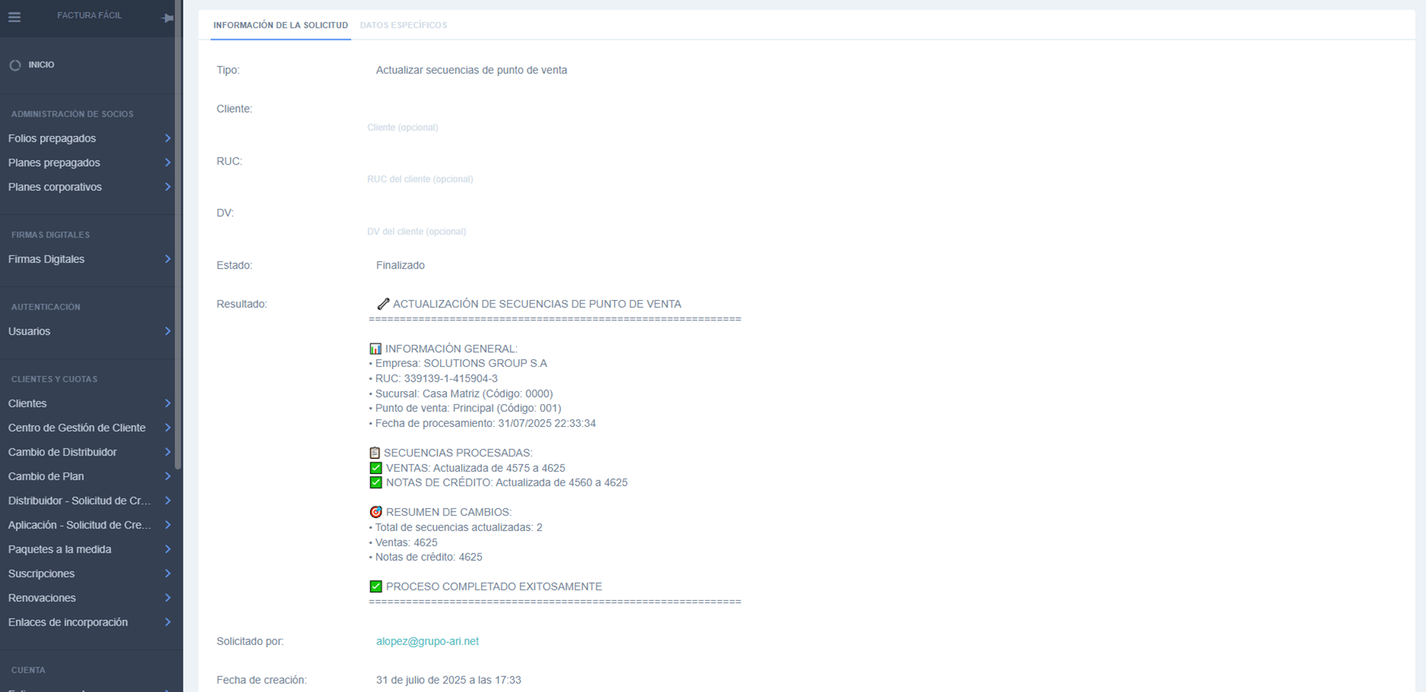 - Corregir secuencias de cliente – Ajuste de errores en la secuencia de emisión de documentos