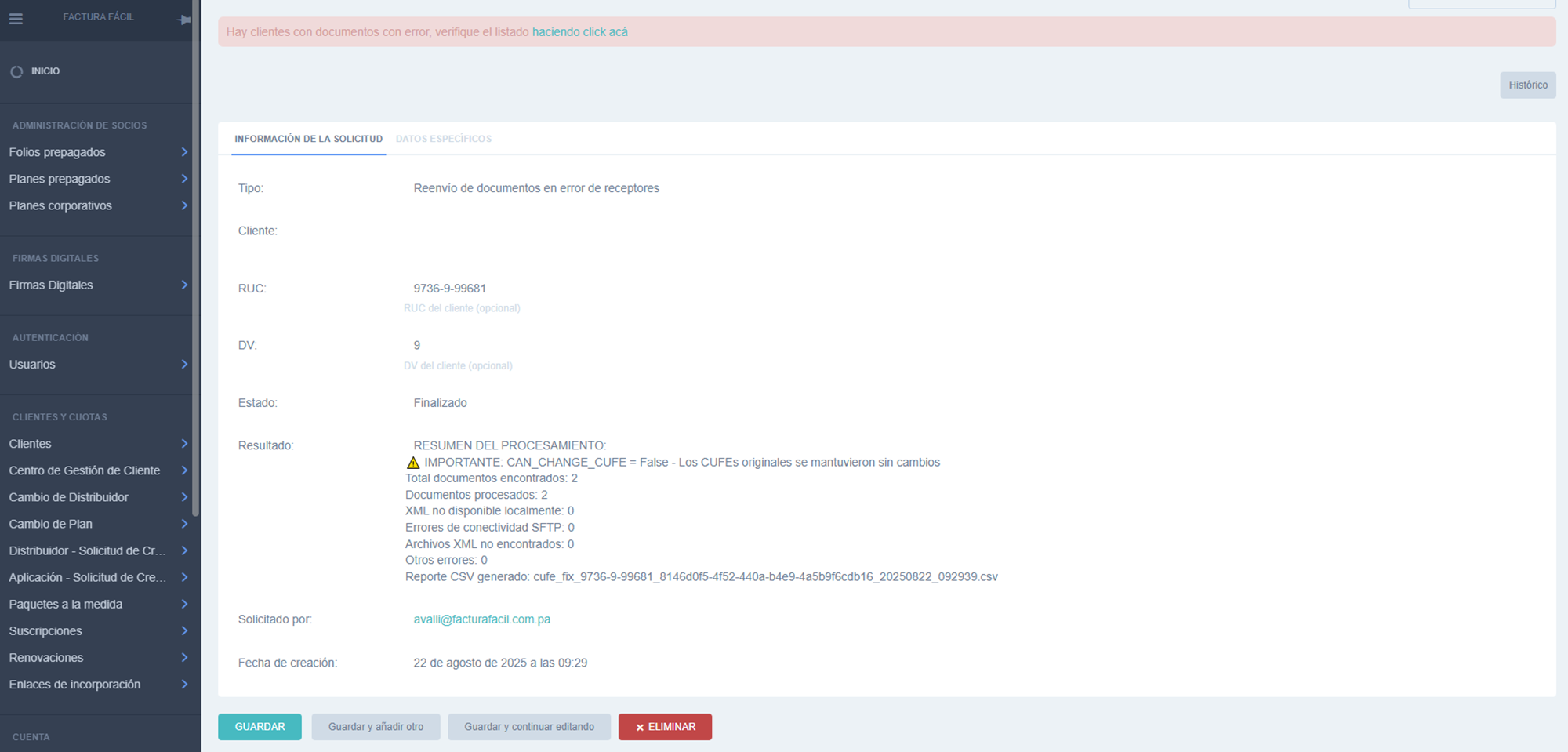 - Reenvió de documentos en error de Receptores - Corrige y reenvía documentos en estado de error por receptores