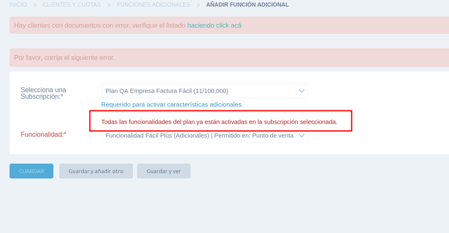 - No permite añadir una licencia (funcionalidad) si ya el cliente tiene activas todas sus características, eso evita que se crucen funcionalidades idénticas o se active la misma por error.