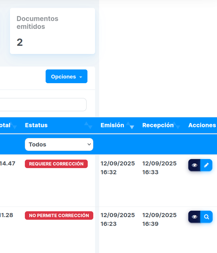 Para los documentos bloqueados ahora se muestra explicitamente el status "No permite corrección". Estos documentos deben atenderse según el error que presenten